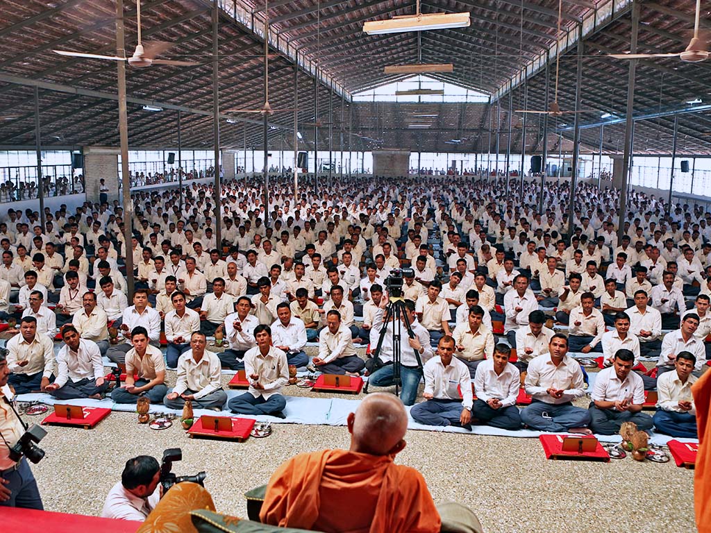 H.H. HariprasadSwamiji. There are more than 7000 initiated householder devotees called - ‘Ambrish’, who have determined to do social and cultural activities under the guidance of their Spiritual Master in the prime priority of their lives, with overcoming their worldly desires. Yogi Divine Society organizes monthly camps for ‘Ambrish’ devotees to provide them with spiritual guidance. H.H.HariprasadSwamiji travels to different regions for these devotees to conduct spiritual assemblies and camps, thereby providing guidance for a spiritual life. He personally counsels all those steeped in social problems, guiding them towards practical as well as spiritual solutions.